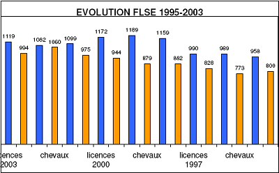 Erfreut zeigte sich der Vizepräsident darüber, dass im Jahre 2003 wieder einmal das nationale Luxemburger Dressur- und Springchampionat an einem Wochenende und an einem Ort ausgetragen werden konnte. Als wichtigen Punkt im Luxemburger Reitsportgeschehen ist außerdem das Championat der Jungen Pferde anzusehen, das den Luxemburger Züchtern neue Möglichkeiten der Präsentation ihrer Zuchtprodukte bietet. Um ein optimales National- und Kadertraining zu gewährleisten wurde auch wieder der Bedarf nach einem nationalen Reitsportzentrum angesprochen, ein Plan der aber neben der zu erwartenden staatlichen Unterstützung noch keine konkreten Formen angenommen hat. Präsident François Thiry wies noch einmal darauf hin, wie wichtig die Veranstaltung nationaler Turniere sei, die gezielt auf Leistungsklassen ausgerichtet sind um angenehme Starterfelder und akzeptable Zeitpläne zu gewährleisten. Er gab das Wort weiter an die Generalsekretärin Viviane Wenger, die anhand der vom FLSE Büro erstellten Statistiken den Aufschwung und die Kontinuität im Luxemburger Reitsport klar umriss.