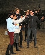 Début daprès-midi, reprise des activités par lexercice du tir à larc à pied, suivie par une séance à cheval avec pratique du tir à larc et du planter -déplanter lance. La motivation de tous les participants ainsi que de leurs moniteurs ont fait de cette journée une véritable réussite et une expérience inoubliable pour tous les cavaliers et leur cheval.