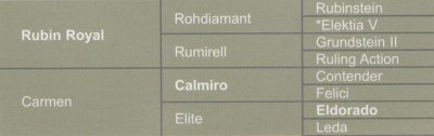 Rubin Cortes: Der dunkelbraune Youngster war strahlender Reservesieger der Oldenburger Hengsttage 2003. Er steht im großen Rahmen und ist mit außergewöhnlichem Bewegungspotenzial reich begütert. Schritt und Galopp genügen ebenfalls höchsten Ansprüchen. Aus dem ersten Jahrgang seines Vaters Rubin Royal stammend, scheint es, als hätte dieser sich in Rubin Cortes seinen eigenen Zwilling geschaffen: Ein Phänomen in Typ und Bewegung, das in seiner Gesamtqualität nur schwer in Worte zu fassen ist. Auch am Sprung mit deutichen Plus-Zeichen versehen, empfiehlt er sich als Multitalent bester Sorte.