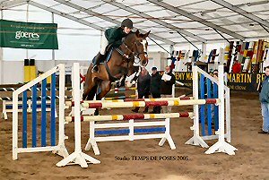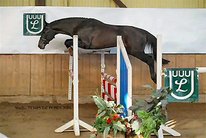 PALOUCHIN DE LIGNY, F., geb. 1999, v. Baloubet du Rouet a.d. Chin China v. Chin Chin u.d. Chantal v. Heroism xx. Sicherlich zu Recht, der Publikumsliebling dieser Körung. Ein modern aufgemachter Sohn des 3 fachen World Cup Siegers Baloubet du Rouet, gefiltert mit dem Blut des hocherfolgreichen Olympia Teilnehmers v. Los Angeles, Chin Chin unter Jaime Aczeguarra. Der Hengst zeigte viel Stamina, ein leichtes aber durchaus korrektes Fundament, sowie einen sehr guten Sprungablauf, mit leichten Abstrichen in der Vorderbeintechnik. Hocherfolgreich von Rodrigo Pessoa, dem Sohn des Züchters bisher in internationalen Aufbauprüfungen vorgestellt, darf man sicherlich gespannt sein auf seinen weiteren Werdegang. Die Fohlen welche im Jahre 2006 auf dem Gestüt de Ligny (Nelson Pessoa) geboren werden, werden zudem den Brand des S.C.S.L. tragen! |