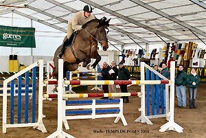 SWALLAND, Dbr. geb. 1999 v. Corland a.d. Nietrichta v. Indoctro u.d. Hetrichta v. Nimmerdor Der Sohn des z.Z. in der Zucht erfolgreichen Corland steht in mittlerem Rahmen, mit einem ansprechenden Körperbau, leichtem aber korrektem Fundament. Wenn man ihm etwas ankreiden könnte, dann ist dies sicherlich sein schwach ausgeprägter Hengstausdruck. Er absolvierte die von ihm geforderten Aufgaben über dem Sprung in guter Manier, und sehr guter Einstellung. Hervorragende Platzierungen im belgischen Championnat bestätigen diese Erkenntnis. |