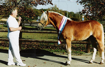 Dann wurde der Hengst Alladin Van het Bakkerhof B EL H 219908-VRB V: Athila , VV: liz Alpenstein, M: Angola, MV: Nabucco den Richtern zur Anerkennung vorgestellt, dieser Hengst war gekört für ein Jahr und musste dann noch die Leistungsprüfung bestehen die er mit einer Gesamtnote von 7,89 in Deutschland bestanden hat und ist jetzt ab dem 20.10.2007. im C.S.L. anerkannt und gekört, er ist im Besitz von Vester Dagobert aus Hennef(Deutschland). Nach der Bekantgebung der Punkte und Ehrenrunde der Sieger war dann diese Körung beendet.