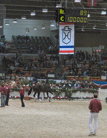 Mit einem bislang noch nie da gewesenen Durchschnittspreis von 137 500 Euro endete die Auktion der 22 zum Verkauf stehenden gekörten Hengste. Für 360 000 Euro wurde der Catoki-Sir Shostakovich xx-Sohn Canoso zugeschlagen. Er wird im Oldenburger Gestüt Sprehe (Löningen) seine Box beziehen. Das belgische Gestüt Zangersheide sicherte sich für 300 000 Euro den Clinton I-Carthago-Sohn Clintissimo aus der Zucht der Hartmann Zucht- und Turnierstall GmbH, Rendsburg und dem Besitz der Ahlmann Sportpferde GmBH. Norbert Boley, Geschäftsführer der Abteilung Hengsthaltung und Vermarktung war hochzufrieden mit dem Ergebnis: Die Hengste haben sehr gute Preise gebracht, aber die Kunden sind vernünftig geblieben.“