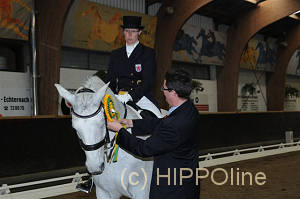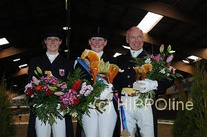 Eine weitere Prüfung dieser Art ging an Pascale Sax auf Emimen einem 6-jährigen Württemberger Wallach mit der Note 7,6 und an Arjan van Loon auf der 6-jährigen Westfalenstute Freiwenet mit der Note 7,8. Pascale Sax platzierte zudem noch die 6-jährige Trakehnerstute In Vita auf Platz 1 mit der Note 7,7. Sämtliche Ritte und Noten wurden von den Richtern fachmännisch kommentiert was die Bewertungen für die Zuschauer verständlich und übersichtlich machten.