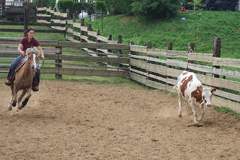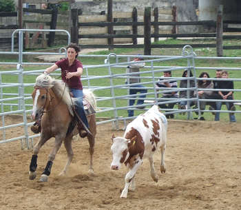 Francine Hahn und Mandy Kauffmann gehen mit ihren Haflingern Welldone ET und Cheyenne HHK einer in unseren Breitengraden eher ungewöhnlichen Beschäftigung nach, dem Team Penning. Beim Team Penning muss ein Team, bestehend aus 3 Reiter mit ihren Pferden aus einer Rinderherde 3 markierte Rinder aussondern und in einen Pferch treiben. Die restliche Herde muß am ursprünglichen Platz bleiben und darf der Gruppe nicht hinterhertraben. Das Team, welches die 3 Rinder am schnellsten und ohne Fehler eingetrieben hat, gewinnt.