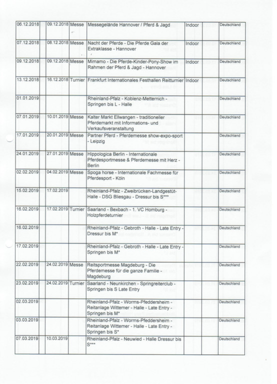 News rund ums Pferd aus Luxemburg, Turniervorschau 08.12.2018 Agenda 8. Dezember 2018 HIPPOlou📊 111 mal gelesen Schreibe einen Kommentar Liebe HIPPOliner Anbei etwas Agenda betreffend Termine rund ums Pferd Agenda 08.12.2018