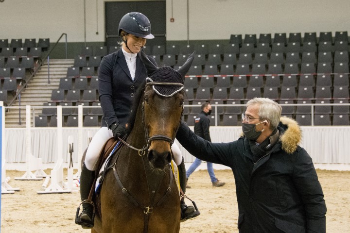 Die zweite Preisspitze mit einem Zuschlag bei 84.000 Euro war der Ic-Prämienhengst v. Frascino a.d. Fahra-Diva v. Lauries Crusador xx – Dormello – Placido, aus der Zucht von Frank & Christine Lange, Porta Westfalica, und ausgestellt von Peter Aringer aus Herford. Seine dritte Mutter Farena ist die Schwester des Weltcup-Siegers Delaunay OLD v. Dr. Doolittle unter dem Schweden Patrik Kittel.