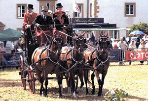 Die dritte Auflage des CIAT-Luxembourg, Concours international d’attelage de tradition, hat erfolgreich in der romantischen Kulisse des“Suessemer Kannerschlass“ am Sonntagabend abgeschlossen. 23 Konkurrenten, von Einspänner, über Zweispänner, Dreispänner bis über Vierspänner aus Polen, Holland, Frankreich, Deutschland, Belgien, England und Luxemburg haben in 3 verschiedenen Disziplinen ihr Können unter Beweis gestellt. Nach der ersten, der Präsentation, haben sich die Gespanne auf den Weg einer 16 Km Geländestrecke durch die Sassenheimer Gemeinde gemacht, wobei nach Ankunft im Schlosspark noch 4 Gehorsamkeitshindernisse gefahren werden mussten. Am Nachmittag wurde eine Geschicklichkeitsprüfung auf dem mit 17 Kegeln versehenden schwierigen Parcours von allen Gespannen gefahren. 13.06.2004 Internationales Traditionsfahrturnier in Sanem weiterlesen