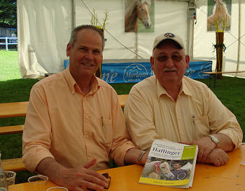 | links Walter Oberhofer Obmann des Südtiroler Zuchtverbandes, rechts Edy Biot Zuchtleiter des C.S.L. Luxemburg während eines Gesprächs über die Zukunft des Europaverbandes und der Haflinger Zucht |