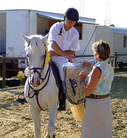 Wer ist der beste im Lande?? Die Frage stellte sich am 30. Juli 2006 in der Reitanlage der Société hippiqe rurale in Merl. Bereits am Freitag und am Samstag herrschte reger Betrieb auf dem Merler Gelände. Zwar ist das Publikum äußerst dünn gesät, die Motivation der Reiter einen Landesmeistertitel zu erringen jedoch ist ungebrochen. In der Jüngstenklasse bis zu 11 Jahren, bei den Poneys minimes waren 5 Starterinnen angetreten, wovon am Freitag Tessy Einsweiler, Katharina -Grad-Senska, Julie Kraus und Jessy Fraiture sich keine Strafpunkten einhandelten. Am Samstag überzeugte dann Jessy Fraiture auf dem Meisterschaftspony ihrer Schwester Conny als einzige mit einem fehlerfreien Ritt, ihren provisorischen ersten Platz wandelte sie dann am Sonntag in den 1. Meisterschaftstitel ihrer noch jungen Reiterkarriere um vor Katharina Grad-Senska auf Mir OMellie und Tessy Einsweiler auf Twix..