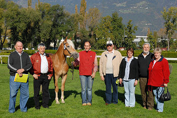 Luxemburger Vertreter des Stud-Book Luxembourgeois du Cheval de Sang Sektion Haflinger beim Auftrieb der Junghengste und der Hauptstammbucheintragung in Südtirol