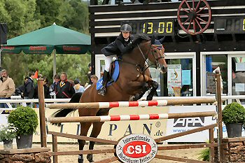 Stéphanie Wilwert (Foto), als Ponyreiterin bereits erfolgreich setzt ihre Laufbahn zur Zeit erfolgreich auf Großpferden fort. So wurde sie beim CSIJYP in Hachenburg in der Mittleren Tour einem Springen über 1,35m mit Lancelot bei 51 Startern fehlerfrei als 10te platziert. In einem weiteren 1,35m Springen bei 41 Startern war Viktoria Häussler mit Amagedon mit 0 Fehlern als 5te und Stéphanie Wilwert mit Lancelot mit 0 Fehlern als 6te platziert. Im Finale der Mittleren Tour einem S* Springen über 1,45m kam Stéphanie Wilwert mit Lancelot bei 34 Startern mit einem Abwurf auf den 5ten Platz, Viktoria Häussler mit Amagedon auf den 12. Platz. 10.06. ? 12.06.2005 CSIJYP Kat A in Hachenburg (GER) weiterlesen